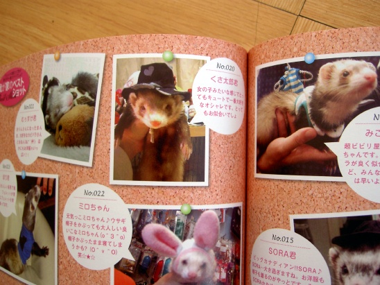 以前、フェレットワールドHPで応募していたオシャレコンテストに写真を記載したら、その後、フェレット情報雑誌にくさ太郎くんの写真を載せて