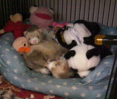 のぬいぐるみが何故か置かれていました(笑)フェレ友さんからTHE DOGシリーズのフェレット版が出たのを聞き